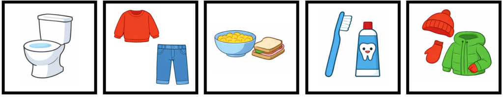 Du kan gärna använda bildstöd till er morgonrutin som barnet själv kan följa. Det stärker självständigheten och minskar tjat. Det används flitigt inom förskolan.